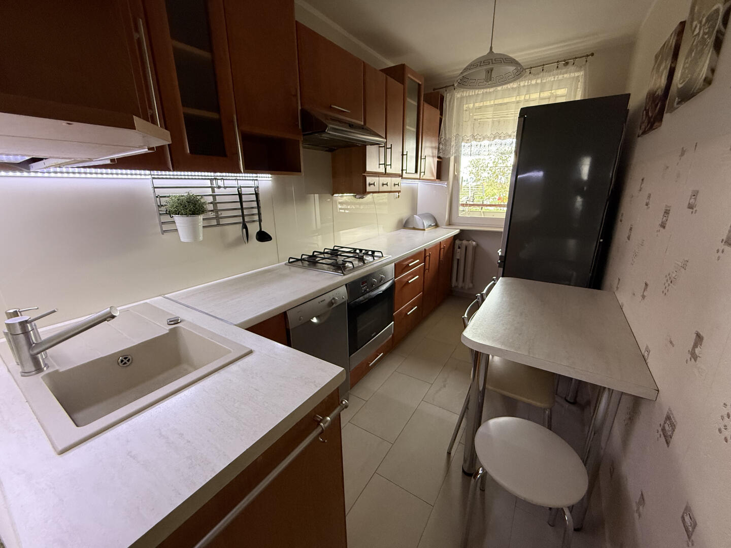 Mieszkanie ma powierzchnię 60 m2 i znajduje się na drugim piętrze. Składa się z dużego salonu z wyjściem na balkon, oddzielnej funkcjonalnej kuchni, sypialni, dodatkowego przestronnego pokoju, łazienki z wanną oraz osobnej ubikacji. Dodatkowo w korytarzu stoją dwie duże szafy. Przynależy do nie również piwnica zapewniająca dodatkowe miejsce do przechowywania.