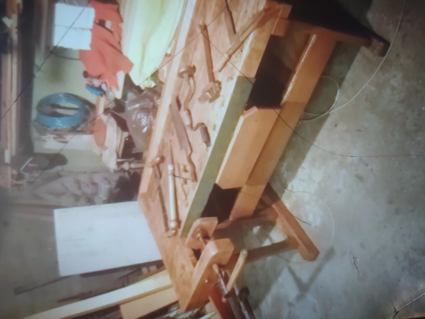 Stary stół stolarski dębowy BARDZO dobry stan wszystko sprawnie oraz stare narzędzia stolarskie za dopłatą