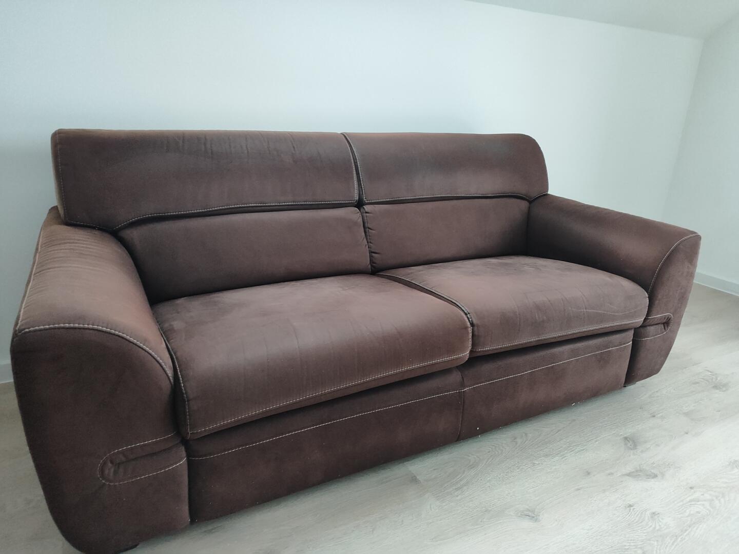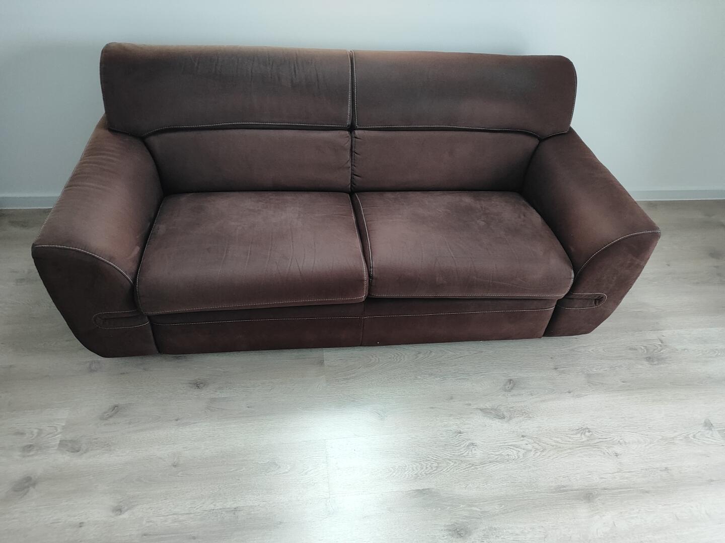 Kanapa firmy aris wymiary 84 wysokość szerokość 195. Kanapa nie jest rozkładana.Materiał skóra zamszowa kolor ciemny brąz.Gratis dorzucam pokrowiec do kanapy.Odbiór osobisty Grajewo . Cena nie podlega negocjacji.