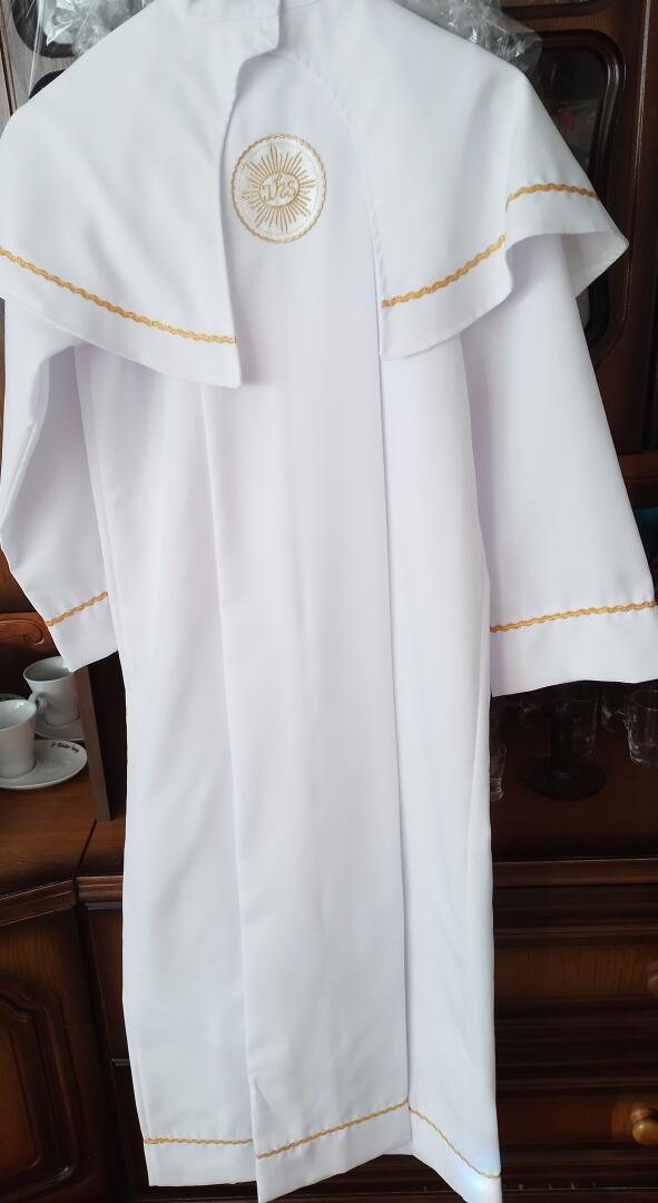 Sprzedam albę komunijną dla chłopca długość od ramion 120cm. Alba była szyta na miarę.