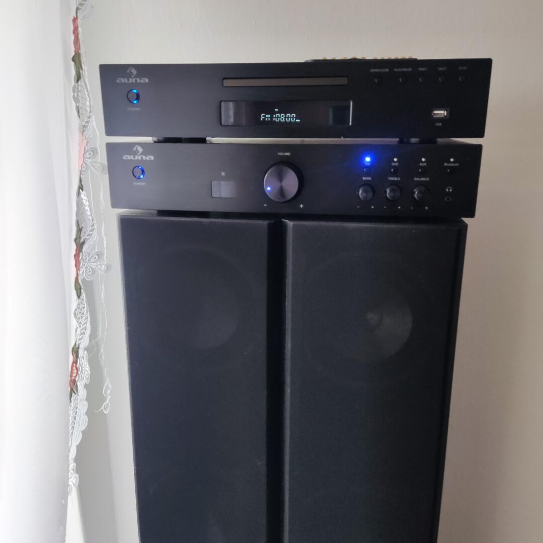 Mam na sprzedaż Wzmacniacz Radio CD AUNA bt, USB pilot, kolumny głośnikowe.